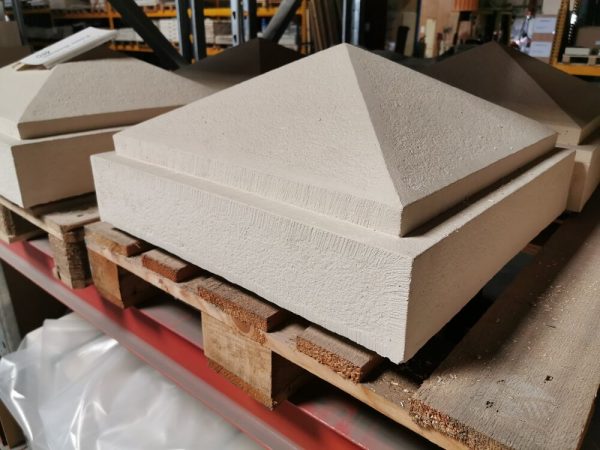 Nos chapiteaux en pointe diamant sont fabriqués en pierre reconstituée. L’alliage des différentes matières premières permet de contrôler la densité et assure une résistance au gel sur les sites les plus exposés. Aucun traitement n’est à prévoir lors de la pose de votre chapiteau.